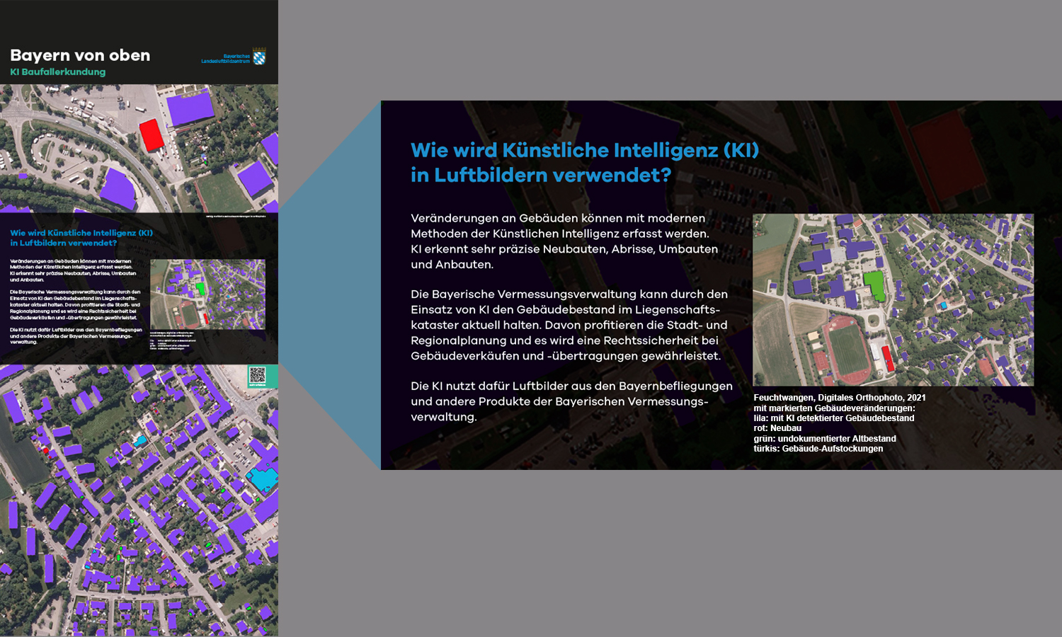 Anlässlich des fünfjährigen Bestehens des Bayerischen Landesluftbildzentrums stellte die Wanderausstellung dessen Angebote einem breiten Publikum vor. Die multimedial gestaltete und leicht verständlich aufbereitete Ausstellung vermittelt einen spannenden Einblick in die Geschichte und Technik der Luftbildfotografie. Auf 14 Ausstellungstafeln wurde den Besucherinnen und Besuchern gezeigt, wie Luftbilder gemacht werden, wie sie aufbereitet werden und wo sie eingesetzt werden.